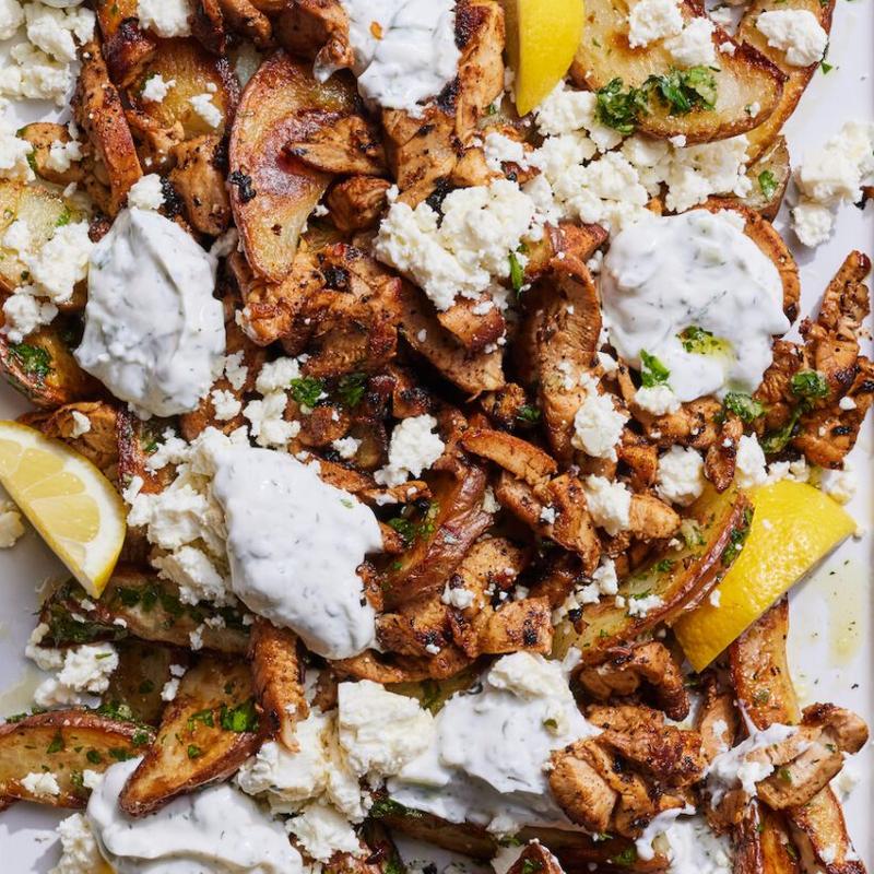 Pesto sauce, mozzarella cheese, red onion, pepperoncini, feta cheese & tomato.