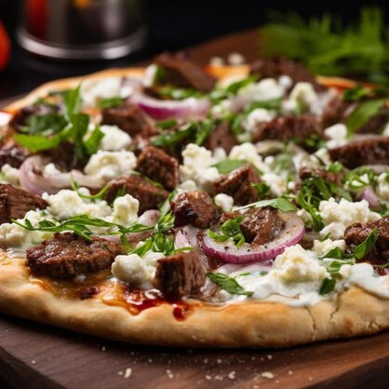 Mozzarella cheese, Philly steak, mushrooms, onions & bell peppers.